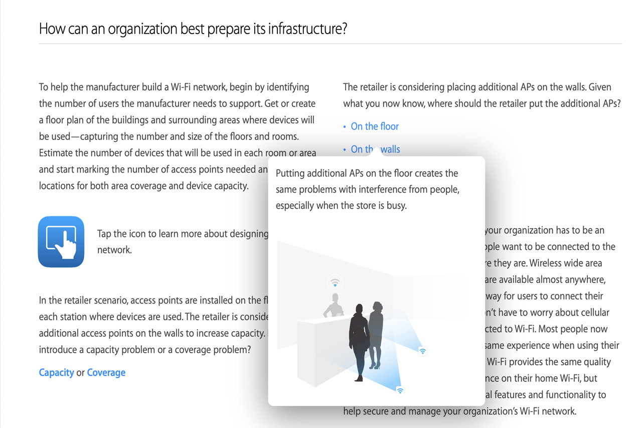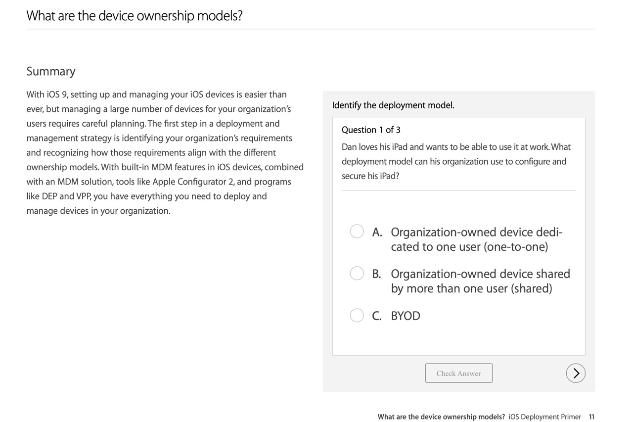I designed and authored an interactive Apple Book as a training reference covering how to deploy iOS devices in an enterprise.